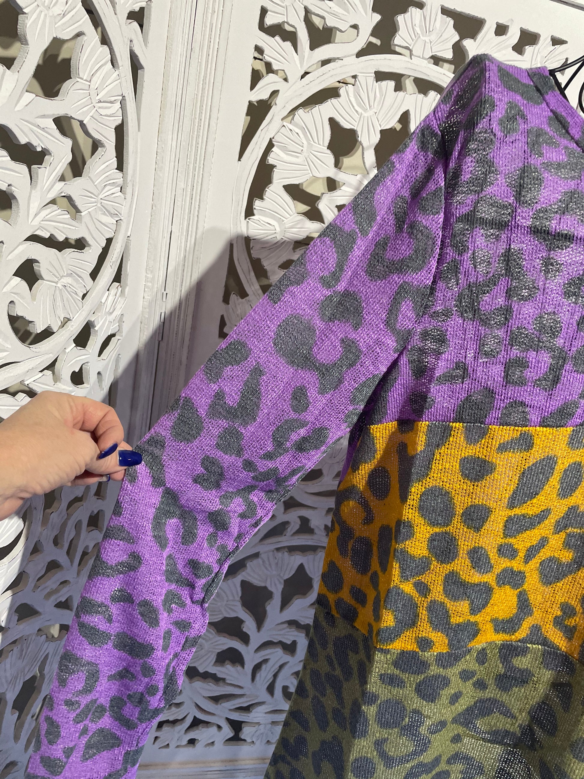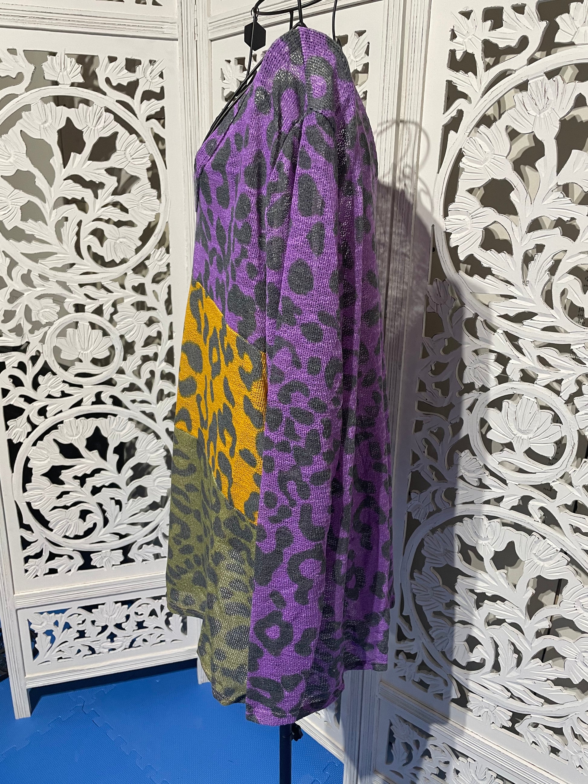 Mardi Gras Leopard Print Low Gauge Deep U Neck Top