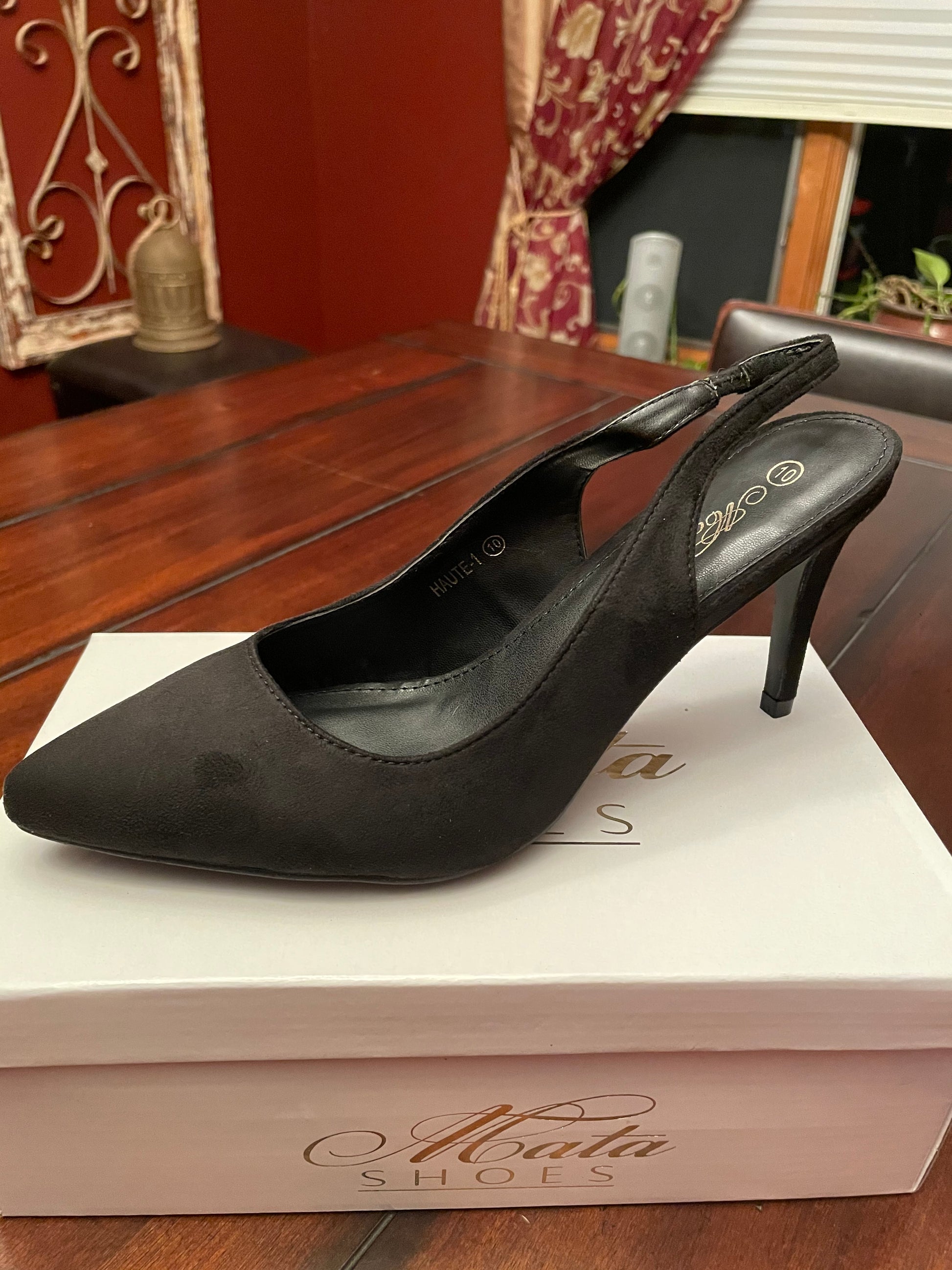 Black Pointed Toe, Slingback High Heels. 100% True to Size