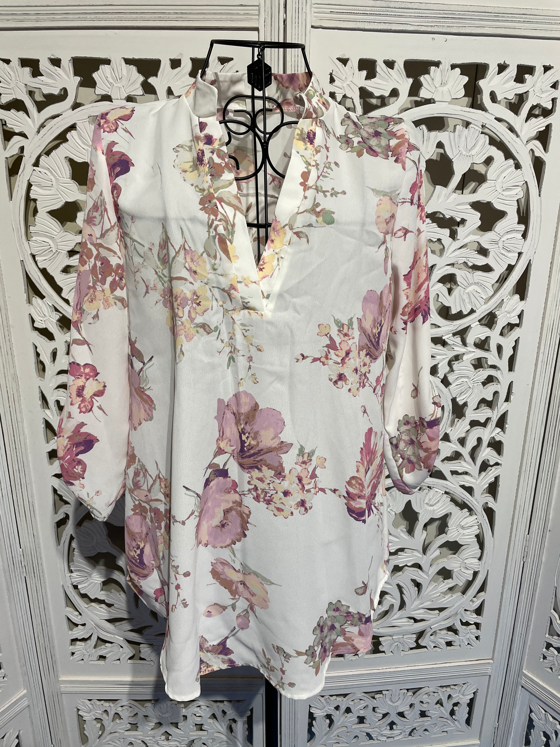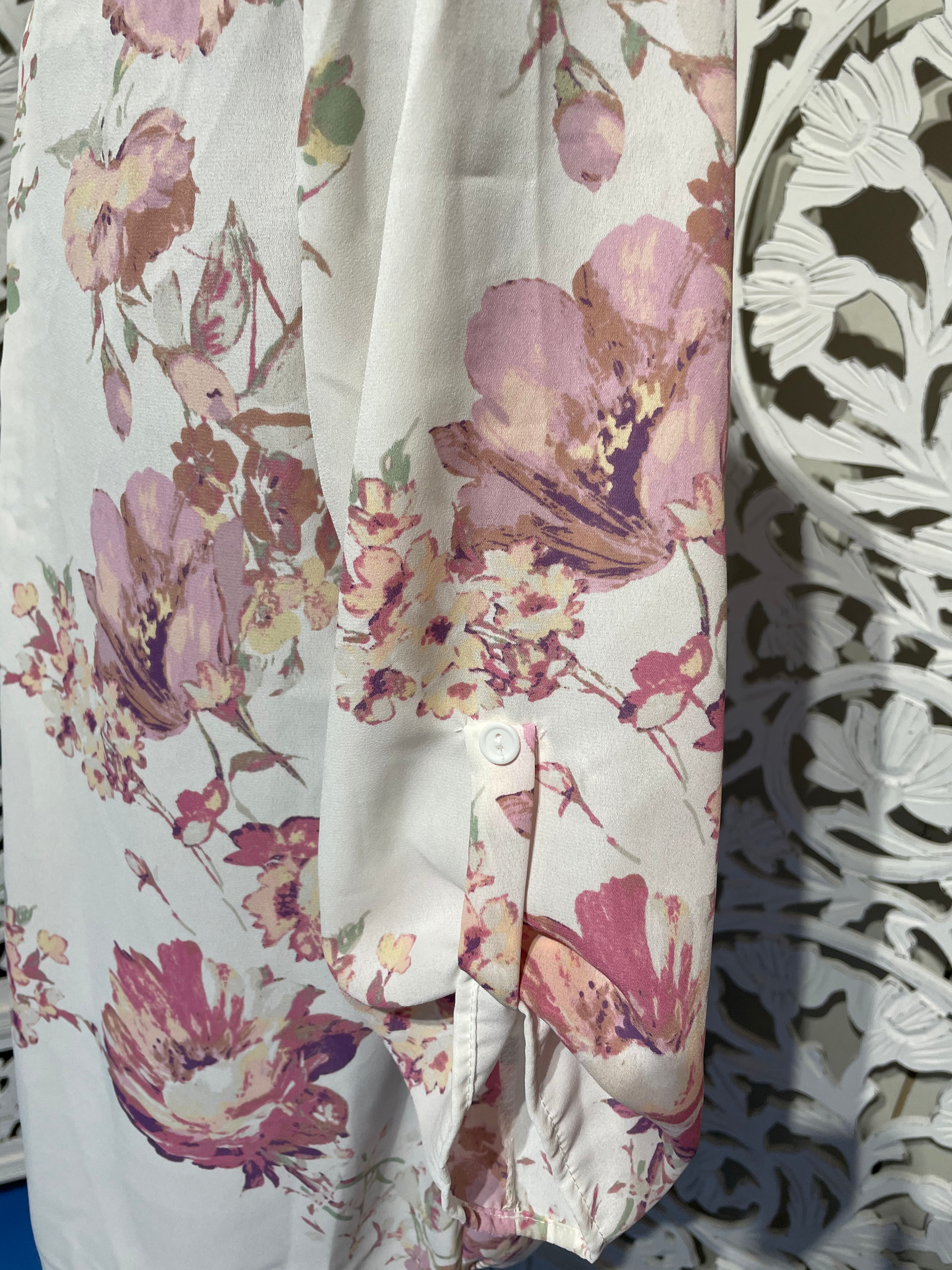 Ivory/Coral V Neck Floral Print Detail Top. 92% Poleyester 8% Spandex